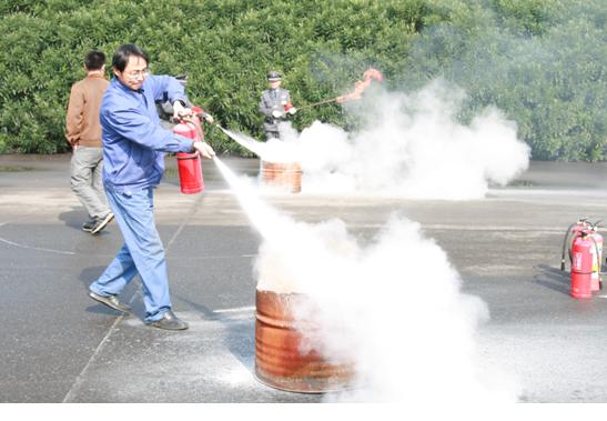 春季消防演習(xí)是水處理公司一項常規(guī)性的安全工作。其出發(fā)點是增強(qiáng)員工的防火意識,提高員工使用干粉滅火器的熟練度。演習(xí)以干粉滅火器近距離油類滅火為主,分為培訓(xùn)和實踐兩個部分。經(jīng)過簡單培訓(xùn),參與演習(xí)的人員均能根據(jù)風(fēng)向合理判斷噴射干粉的科學(xué)位置,并成功實施滅火。