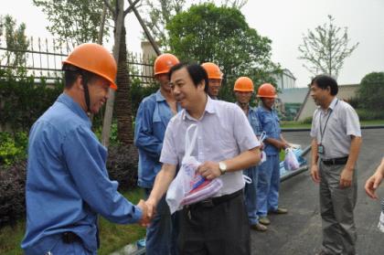 7月18日上午,集團(tuán)公司黨委副書記高小林、副總經(jīng)理王嘉賢在供水公司領(lǐng)導(dǎo)的陪同下到城區(qū)藍(lán)天玫瑰園小區(qū)工地和福全富強(qiáng)村新橋橋管改造現(xiàn)場慰問供水一線職工,送上防暑慰問品,并叮囑大家在高溫酷暑下作業(yè)要注意做好防暑措施。