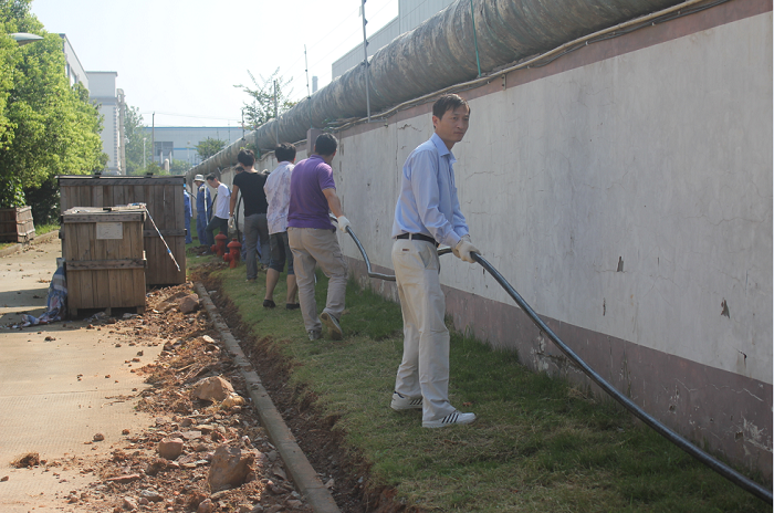 當(dāng)天氣溫高達(dá)35℃,酷暑并沒有消褪黨員們的工作勢情,大家分組結(jié)隊(duì)搬運(yùn)電纜、為管溝覆土,勞動現(xiàn)場呈現(xiàn)出一派熱火朝天的景象。在同志們的共同努力下,僅一個(gè)小時(shí)就完成了長300米、近2噸重的電纜鋪設(shè)工作。參加本次義務(wù)勞動的既有黨員,也有部分入黨積極分子、黨校培訓(xùn)班學(xué)員,大家用實(shí)際行動詮釋了共產(chǎn)黨員的先進(jìn)性。