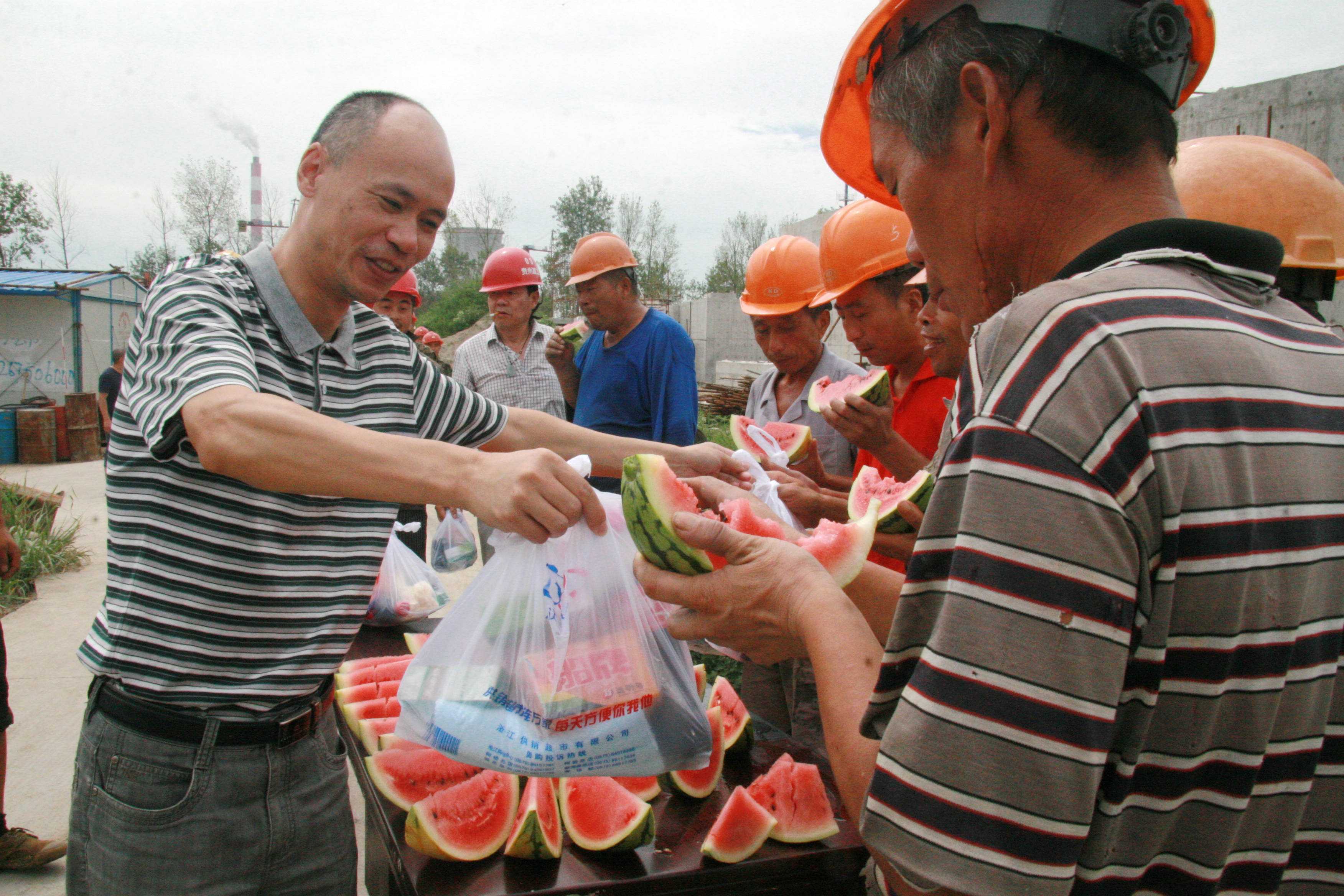公司為工程項目建設(shè)一線工人送清涼