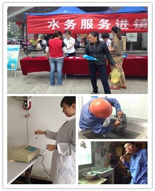 供水便民服務(wù)隊“三進”活動由分公司經(jīng)理親自帶隊,實地走訪了蘭亭鎮(zhèn)婁宮村、蘭亭中學(xué)及紹興縣紅盛紡織有限公司,并為用戶免費提供管網(wǎng)聽漏、水質(zhì)檢測和清洗水龍頭濾網(wǎng)等供水設(shè)施例行維護等服務(wù),得到了用戶的一致好評。此次“三進”活動,還推出“進村入戶”用水設(shè)施檢修服務(wù)活動,上門免費對婁宮村的3戶村民和1家餐館開展水嘴、抽水馬桶檢查,水質(zhì)檢測及供水管道改道換裝等服務(wù),得到了村民的高度贊揚。