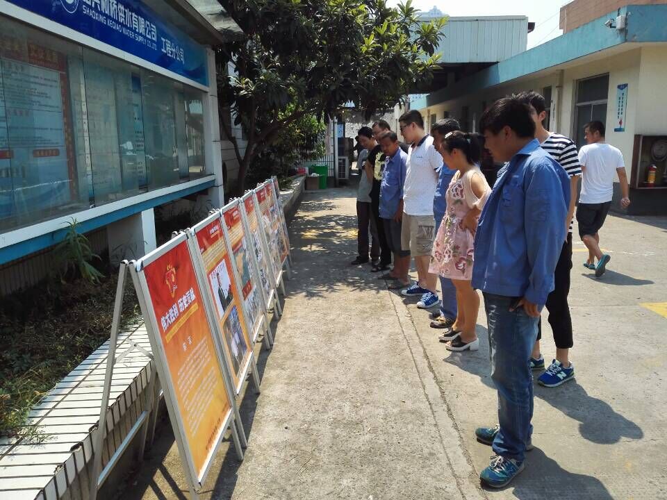 在“9月3日中國(guó)人民抗日戰(zhàn)爭(zhēng)勝利紀(jì)念日”到來(lái)之際,供水公司通過(guò)多種形式開(kāi)展宣傳和紀(jì)念活動(dòng)。一是制作《偉大勝利、歷史貢獻(xiàn)》抗日戰(zhàn)爭(zhēng)勝利宣傳展板,分別以全民族抗戰(zhàn)、中流砥柱、東方主戰(zhàn)場(chǎng)、侵華日軍暴行、偉大勝利、珍愛(ài)和平等主題反映中華民族抗日戰(zhàn)爭(zhēng),并在公司下屬7個(gè)支部之間進(jìn)行巡展,讓廣大干部職工銘記中國(guó)抗日戰(zhàn)爭(zhēng)的歷史;二是以部門為單位,組織學(xué)習(xí)《中國(guó)抗日戰(zhàn)爭(zhēng)70問(wèn)》和《抗戰(zhàn)記憶》,讓廣大干部職工深刻理解抗日戰(zhàn)爭(zhēng)的偉大意義;三是利用中午午休時(shí)間,以支部為單位,組織廣大黨員干部觀看抗日戰(zhàn)爭(zhēng)影片《南京,南京》。通過(guò)主題宣傳,弘揚(yáng)偉大抗戰(zhàn)精神,讓廣大職工銘記歷史、珍愛(ài)和平。