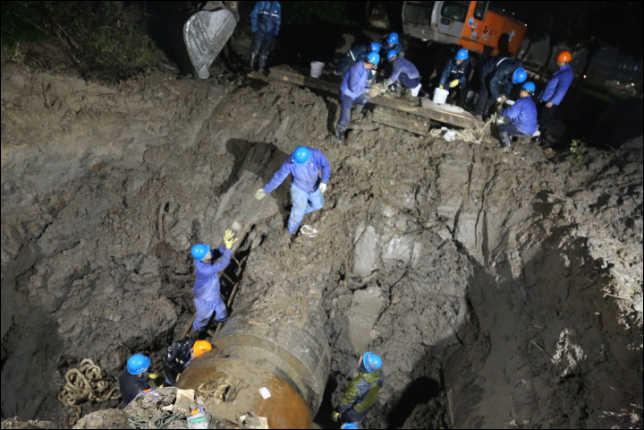 1月17日晚,紹興柯橋?yàn)I海供水公司搶修人員在寒夜中冒雨搶修D(zhuǎn)N1000一期原水管。據(jù)了解,該管線位于興濱路與越北路交叉口以南,是公司輸送原水的重要管線,公司根據(jù)工業(yè)區(qū)供水情況,在不影響企業(yè)用水的前提下展開搶修工作,經(jīng)過開挖、電焊等工序,連續(xù)工作12小時(shí)后,直至晚上9點(diǎn)原水管搶修完成。