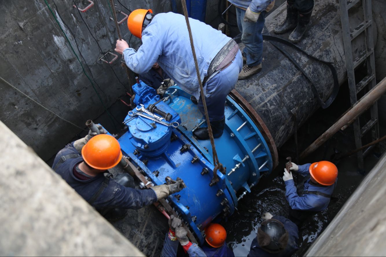 為盡可能消除每年由于沉降及熱脹冷縮引起的爆管隱患,有效減少供水搶修對(duì)用戶用水的影響,同時(shí)更利于今后供水管網(wǎng)調(diào)度,2月6日上午8時(shí),公司組織工作人員在小舜江一期總管36#橋管東側(cè)安裝一只口徑為DN1200的控制蝶閥和配套伸縮節(jié)。